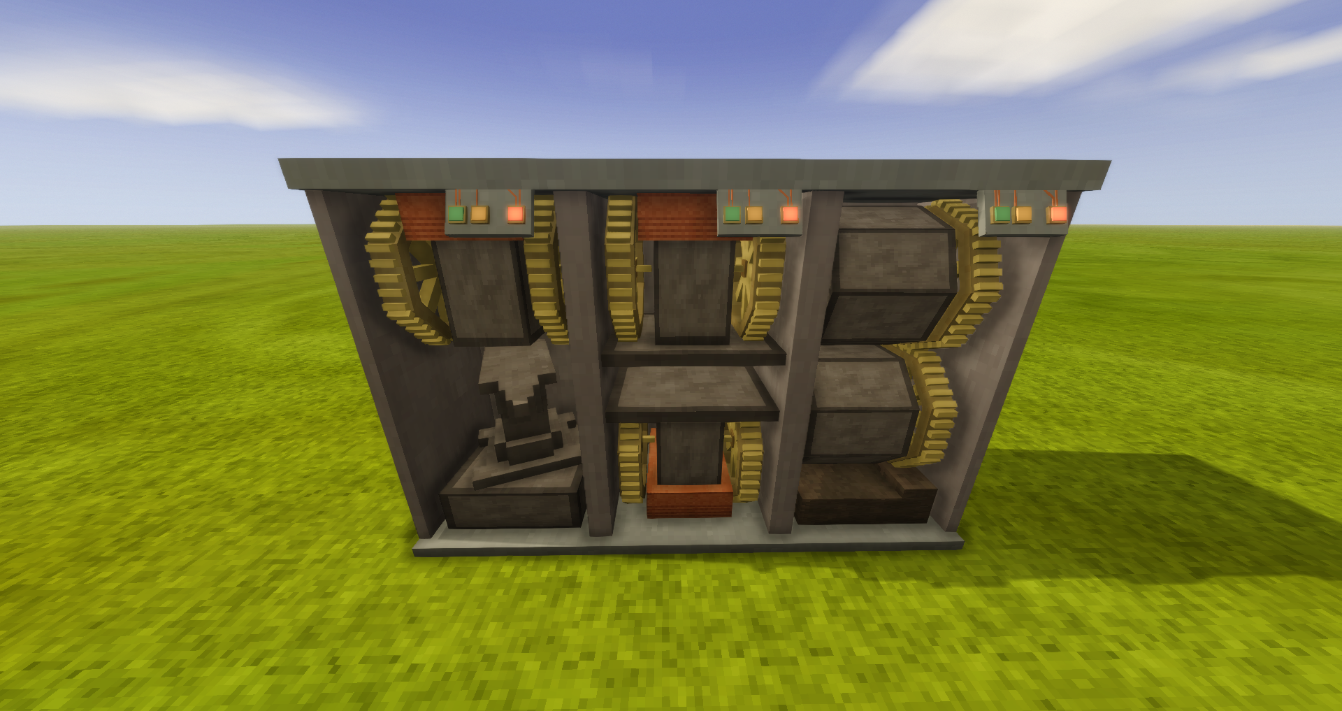 Все электрические параметры всех приборов выведены в настройки json блока насколько это возможно. У большого аккумулятора и фонарных столбов ток проводит только нижняя грань (хотя они и мультиблочные). Остальные устройства в два блока высотой теперь могут запитываться электричеством с любой стороны!