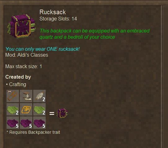 If I want to edit the forager's packs to be able to carry more types of foraged items (berry bushes, wild grains, honeycomb, etc.) how would I do that? I'm newish to tinkering with mods and I can't seem to find a config for Aldis Classes or the advanced features patch. Thanks in advance for any help!