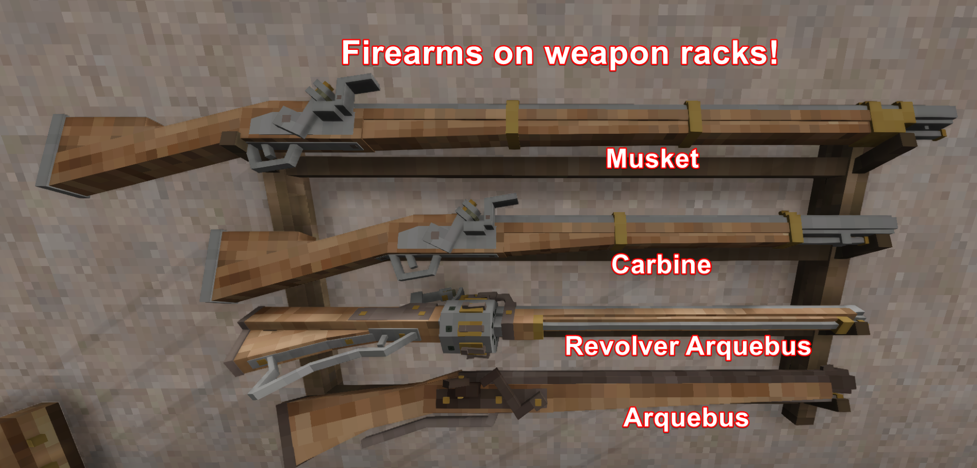 Weapon rack: Musket, Carbine, Arquebus, Revolver Arquebus