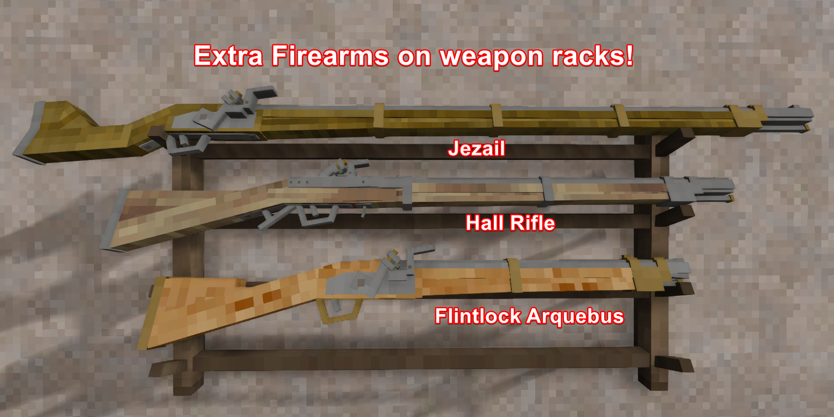 - Flintlock Arquebus is slightly bigger on the weapon rack to make it fit, much like the Arquebus from Matiez' Firearms.