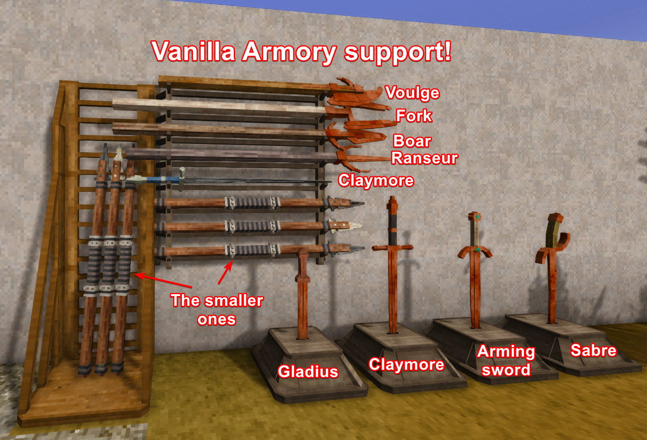 Note: The Vanilla Armory spears that are similar to the vanilla spears won't mix with the vanilla spears. I don't know if I can do anything about it yet. | |||||||