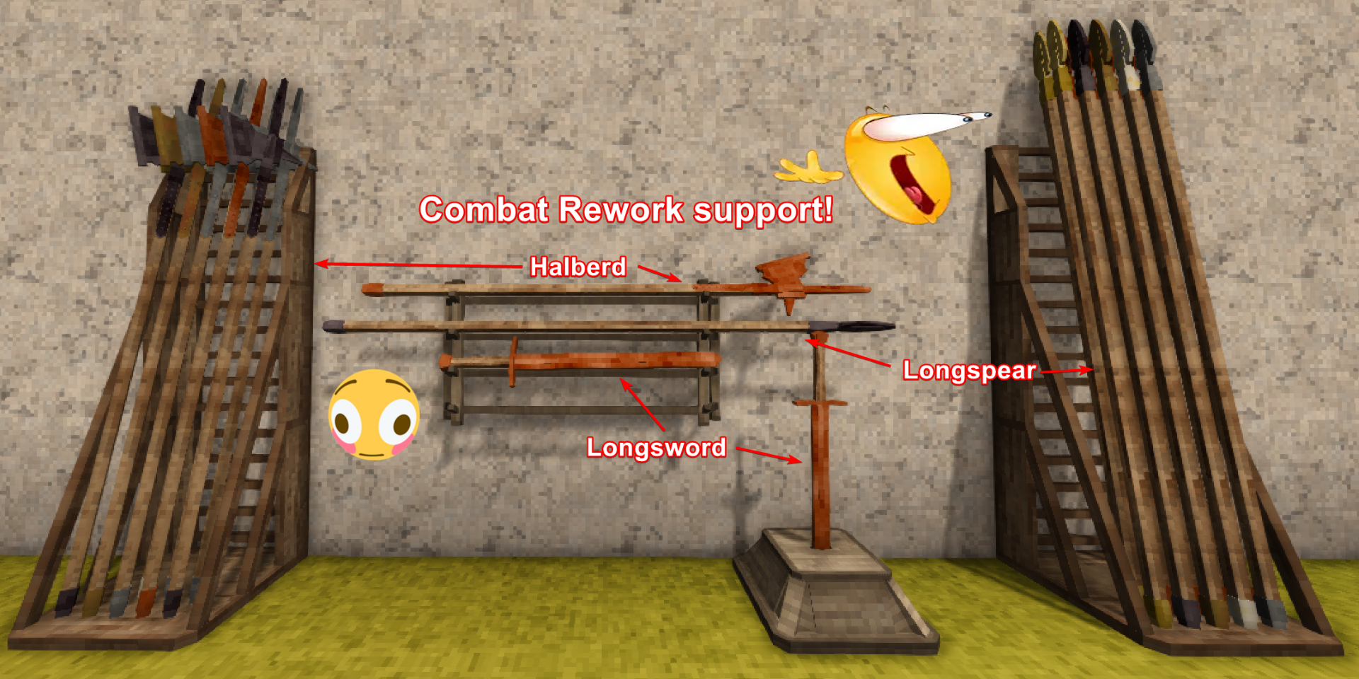 - I haven't added the larger spear-like weapons such as the Boar to the spear rack, due to these spears having more complicated heads that are harder to fit.