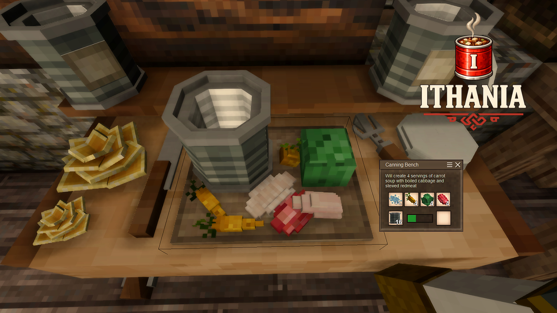 Ithania Canned Goods is currently in its first stage of development. The core preservation system is in place, but this is only the beginning of what the mod is planned to become.